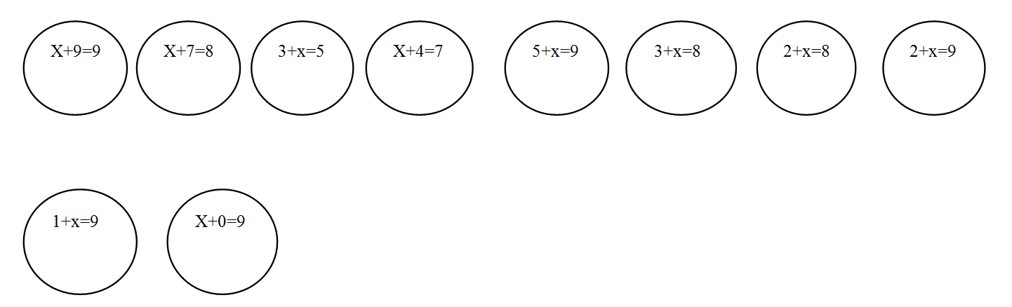 4+7                 3+2<9              9-4=5                          9-ÿ=8                             3+х=9